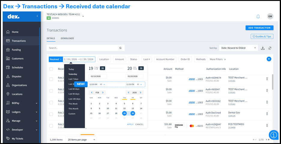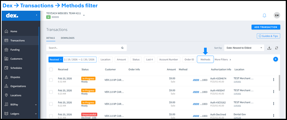 This release introduces improvements to the Transactions and Funding modules in Dex. These updates enhance filtering capabilities, improve reporting clarity, and provide additional functionality for healthcare merchants.